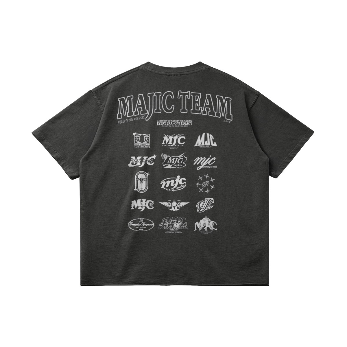The Majic Teamwear Tee isn’t just merch. It’s a piece of the journey. Every logo we’ve ever made, the ones that stuck and the ones that didn’t, printed into the design, a thread through the history of Majic. Featuring a bold varsity-style Majic Team logo on the back, so you can represent wherever you are.