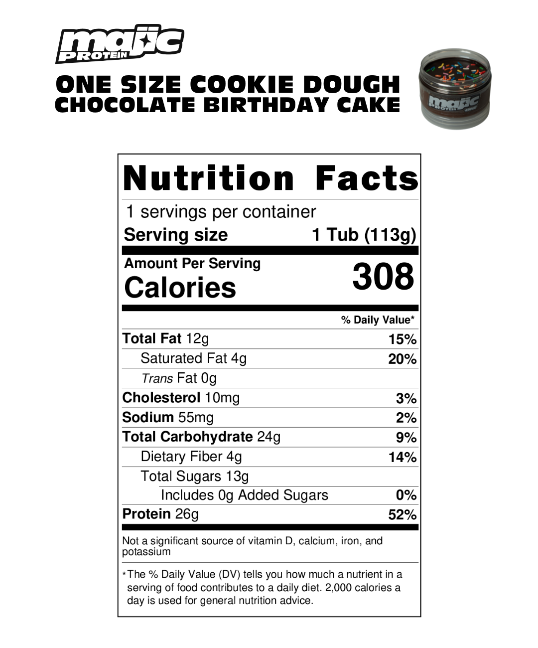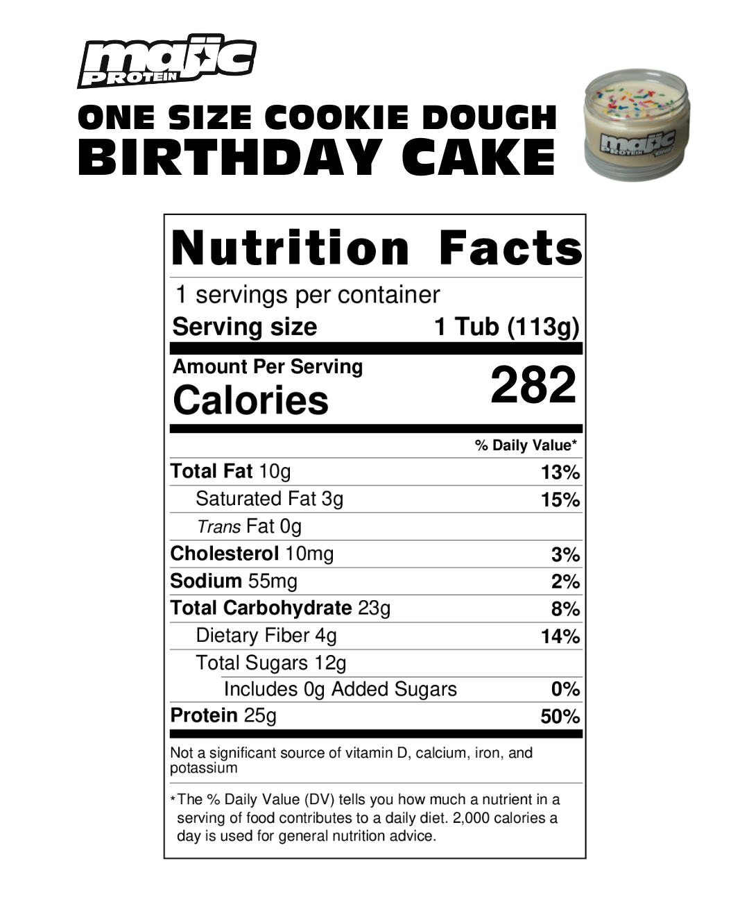 AT Majic protein our products are crafted by hand with care and nutrition in mind. While we aim for precision, there may be slight variations in serving sizes from order to order, hence macronutrient values.