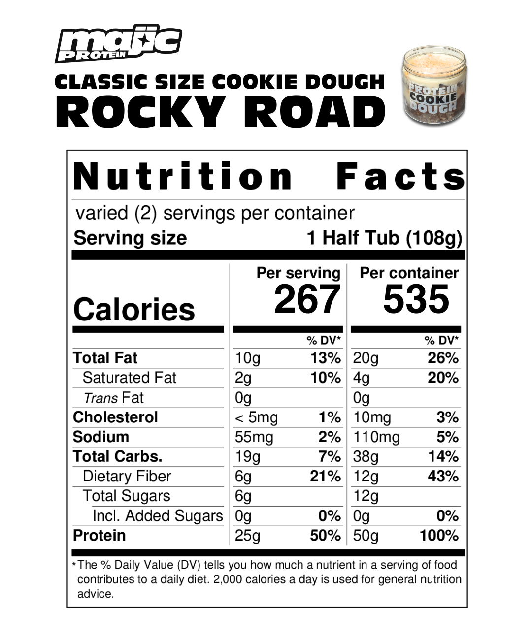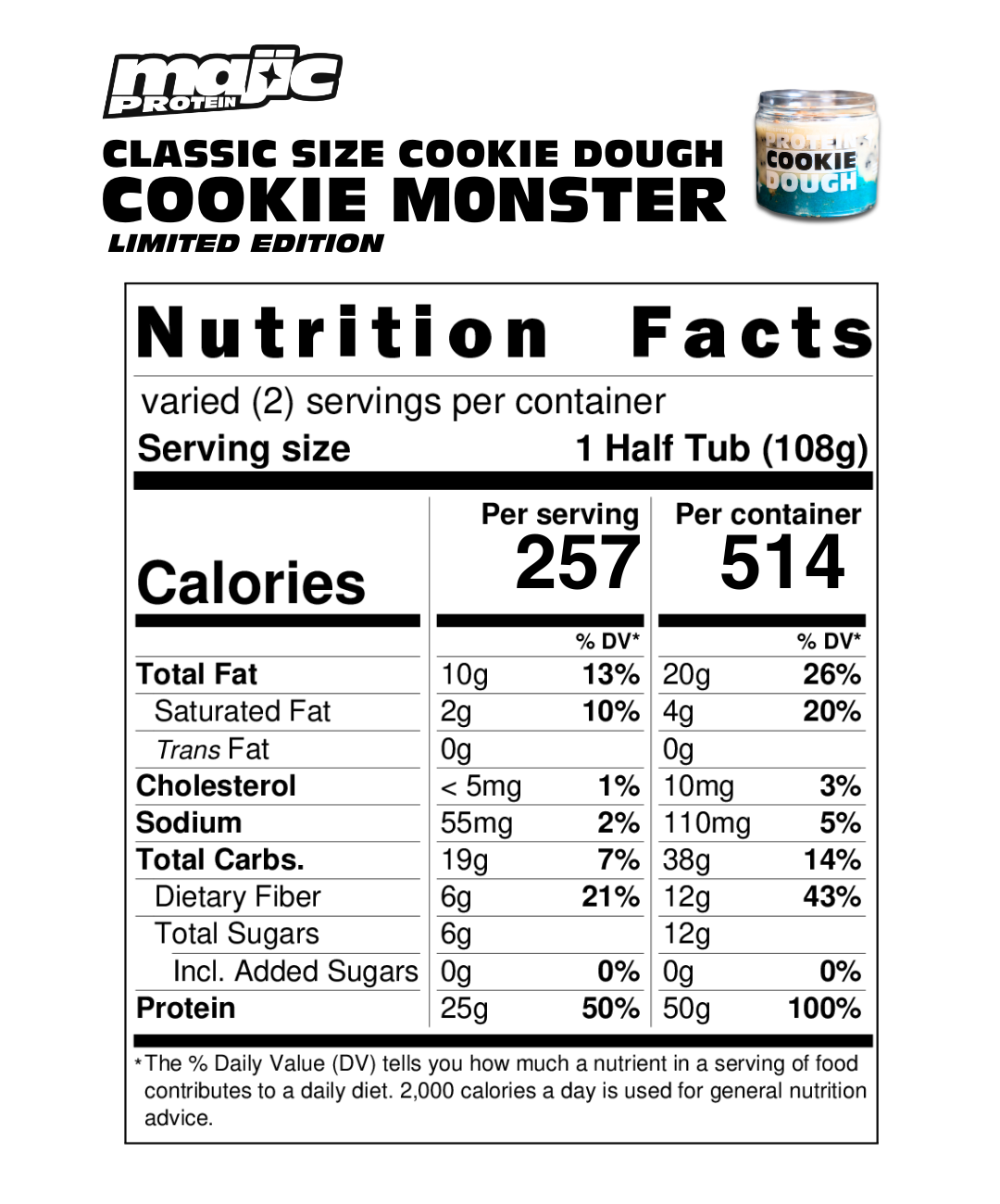 AT Majic protein our products are crafted by hand with care and nutrition in mind. While we aim for precision, there may be slight variations in serving sizes from order to order, hence macronutrient values.