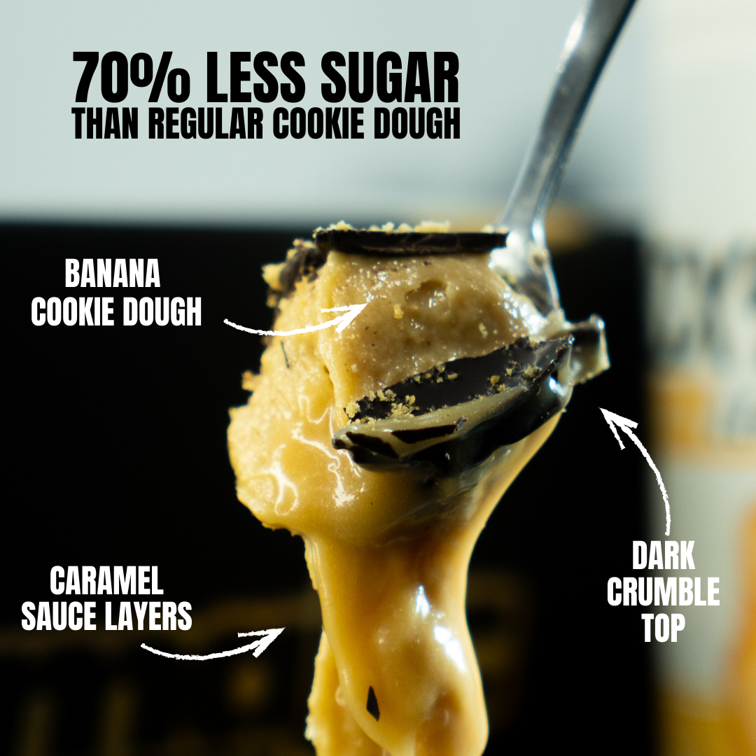 Indulge in the ultimate Banoffee Protein Cookie Dough:  a rich, dessert-inspired blend crafted for those who want high protein without compromising on flavour. We start with our soft, creamy banana popsicle–infused dough made with premium EHP Labs Banana Popsicle OxyWhey protein for that authentic, sweet banana taste. Every tub is layered with luxuriously smooth caramel sauce and finished with a decadent dark chocolate crumble top for the perfect balance of crunch, creaminess, and melt-in-your-mouth comfort.