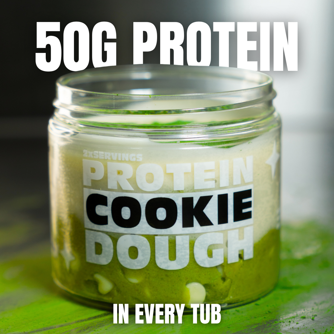 Creamy matcha-infused vanilla protein cookie dough folded with semi-sweet chocolate chips and swirled with a white-chocolate vanilla cream centre for clean matcha energy and indulgent sweetness.