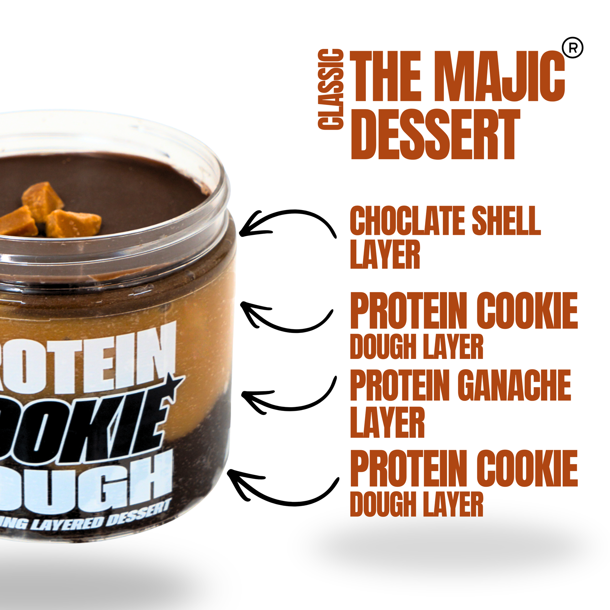 Our core Majic menu in classic size. Four flavours, four indulgent experiences all built with the same high protein low sugar philosophy.