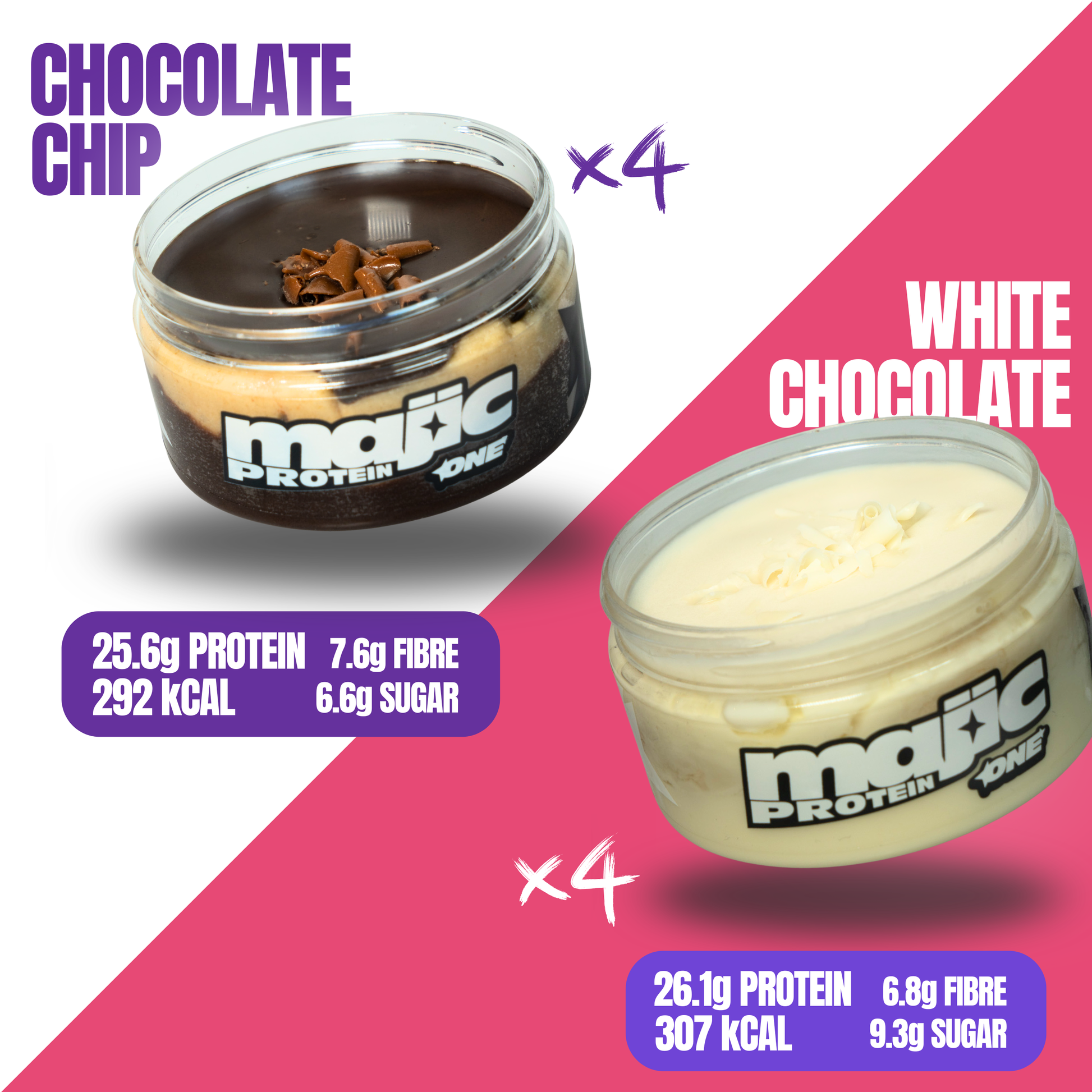 The Box for the Chocolate Lovers. Now in Single Serving Size - Grab 4xChoc Chip and 4xWhite Chocolate